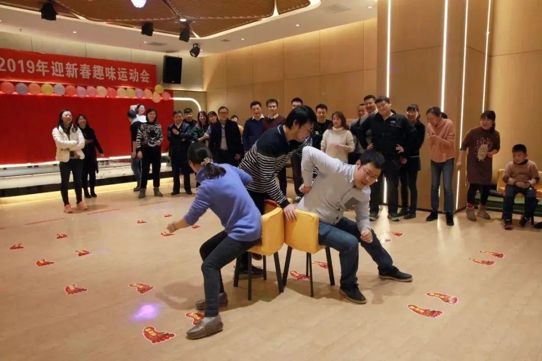 游戲規(guī)則:放音樂(lè),大家伴著音樂(lè)圍著椅子轉(zhuǎn),當(dāng)音樂(lè)停時(shí)(或主持人喊停)搶坐椅子,未坐到者淘汰;減一椅子,繼續(xù),直到最后一個(gè)人獲勝。