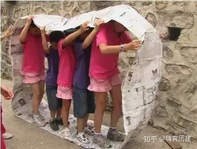 游戲玩法:12-15人一組利用報(bào)紙和膠帶制作一個(gè)可以容納全體團(tuán)隊(duì)成員的封閉式大圓環(huán),將圓環(huán)立起來(lái)全隊(duì)成員站到圓環(huán)上邊走邊滾動(dòng)大圓環(huán)。