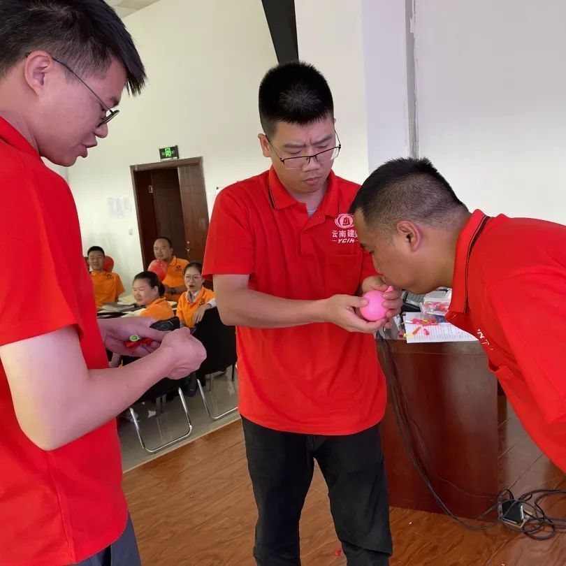 “合力吹氣球”團(tuán)建游戲是團(tuán)隊(duì)協(xié)作能力的充分展現(xiàn),三人成組,一人吹一人拿,第三人負(fù)責(zé)踩,分工明確。團(tuán)隊(duì)成員動(dòng)作要快、氣球吹得越多,踩得也越多。