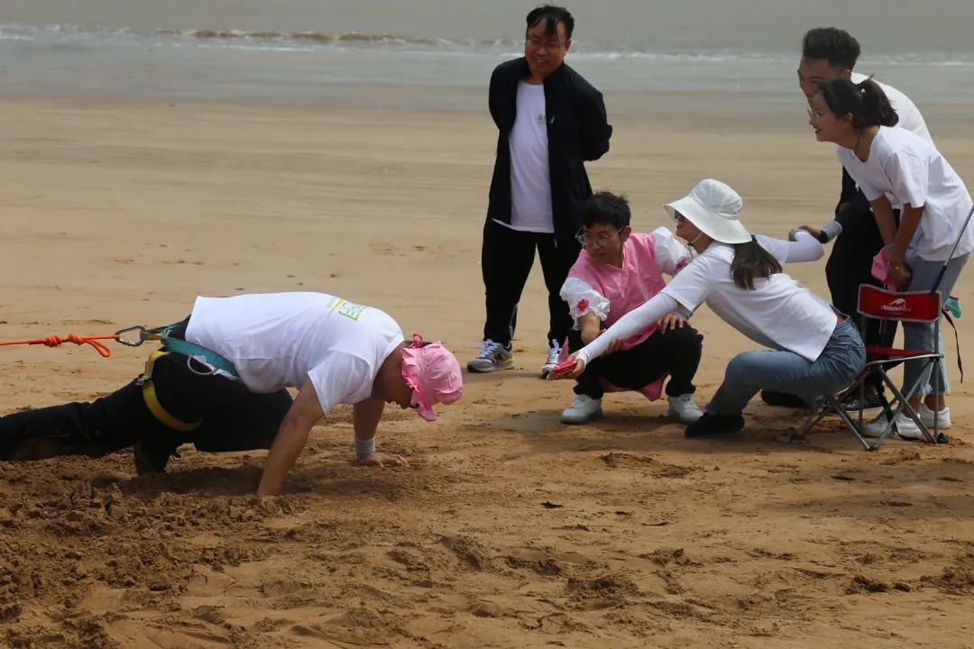 元?dú)鉂M滿,激情有FUN,沙灘趣味運(yùn)動(dòng)會(huì)高燃來襲,在暖場(chǎng)熱身小游戲后,大家被分為6組小團(tuán)隊(duì)進(jìn)行PK對(duì)決,隊(duì)員之間通過設(shè)計(jì)隊(duì)旗、隊(duì)名、口號(hào)等環(huán)節(jié),更加熟悉了彼此,還協(xié)作擺出了一系列創(chuàng)意團(tuán)隊(duì)照。