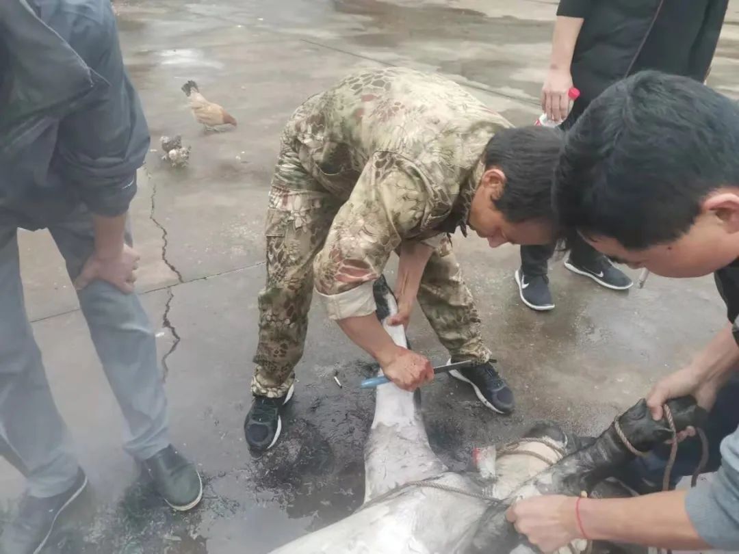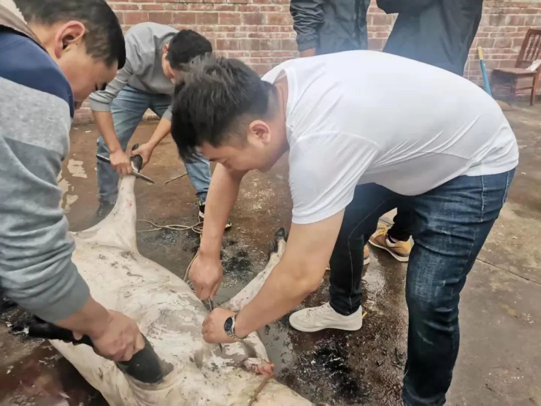 (“殺豬專業(yè)戶”陳相虎同事,每年殺豬都有他的身影。)