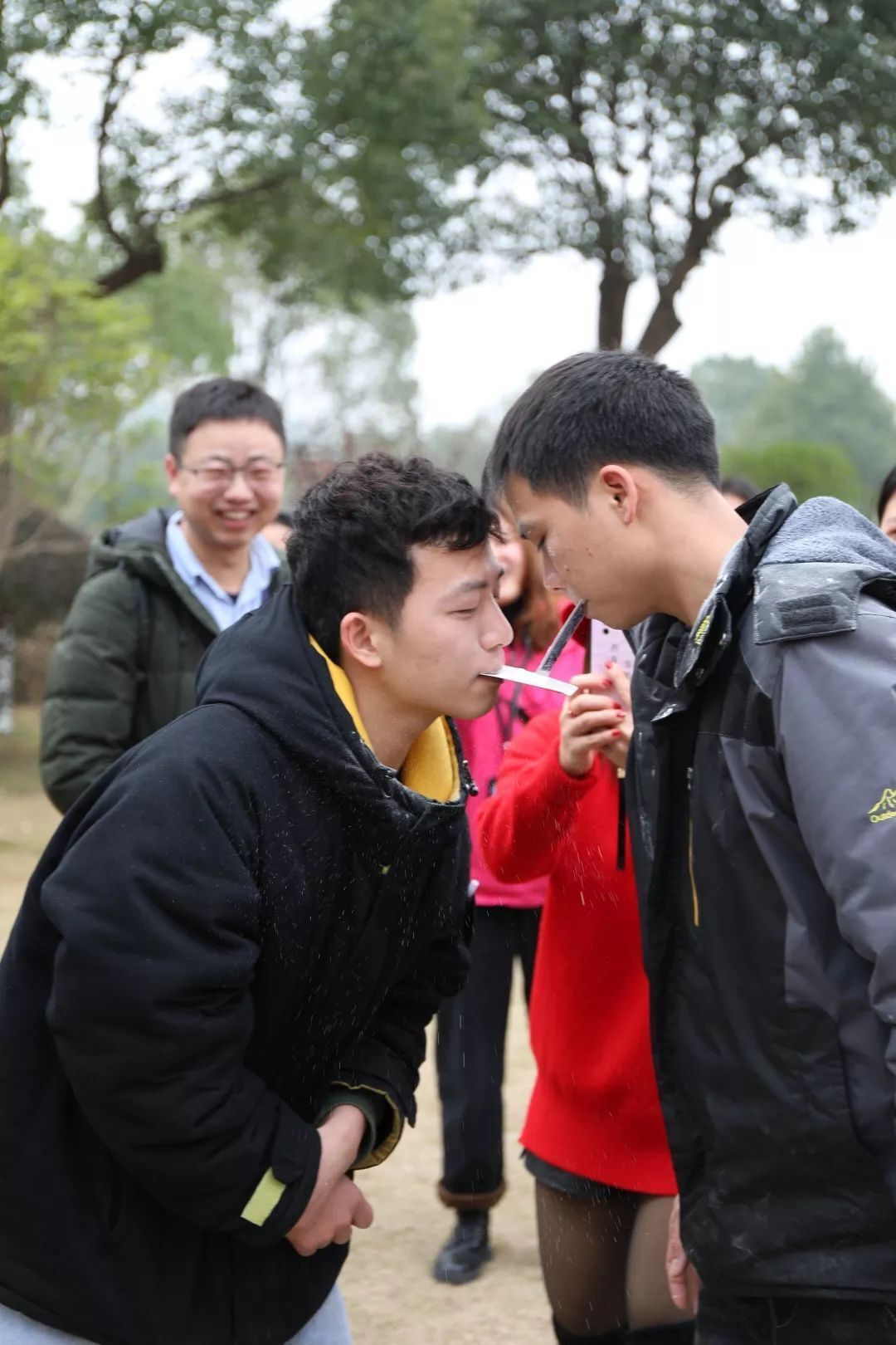 口令數(shù)字游戲是腦力和體力的較量,130余人隨著口令不斷分散、重組,場面緊張有序;面粉接力賽則更富趣味,只見選手們紛紛高抬著下巴,小心翼翼地將面粉傾入隊友的紙牌,面粉因忍俊不禁撲面而來,一輪過后,場上選手個個變身“白眉大俠”、“圣誕老爺爺”.......觀賽的小伙伴們被逗得捧腹不止,笑聲一片。