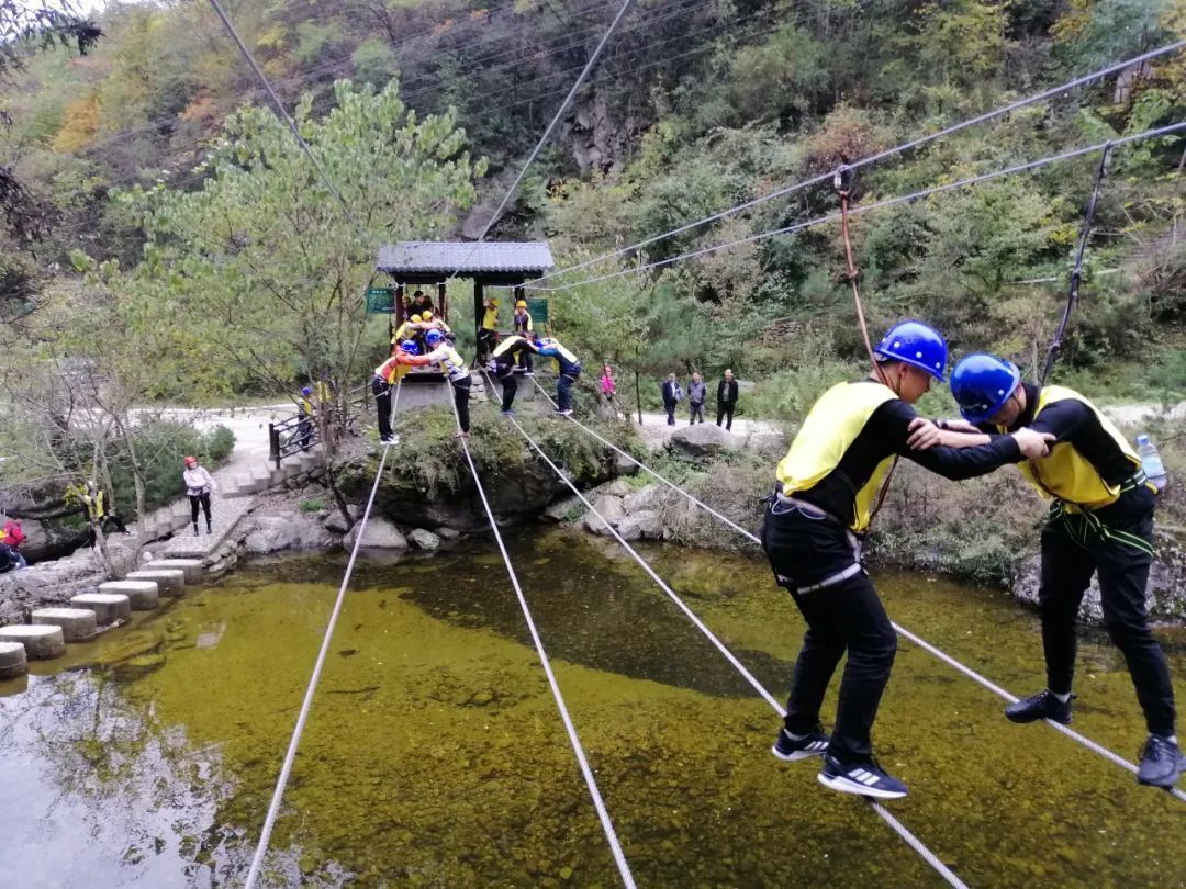大腳丫、滑索過(guò)澗、緬甸橋、抽板過(guò)河、浮樁橋、凌空漫步、飛奪瀘定橋、蕩繩過(guò)河、水上飛、攜手并進(jìn)、彈琴過(guò)澗、悠悠橋、飛檐走壁、高空獨(dú)木橋、通天路、玻璃天橋、高空溜索等十七個(gè)趣味性、體驗(yàn)性、挑戰(zhàn)性、合作性的項(xiàng)目,將旅游與運(yùn)動(dòng)、觀光與體驗(yàn)、理論與拓展緊密結(jié)合。