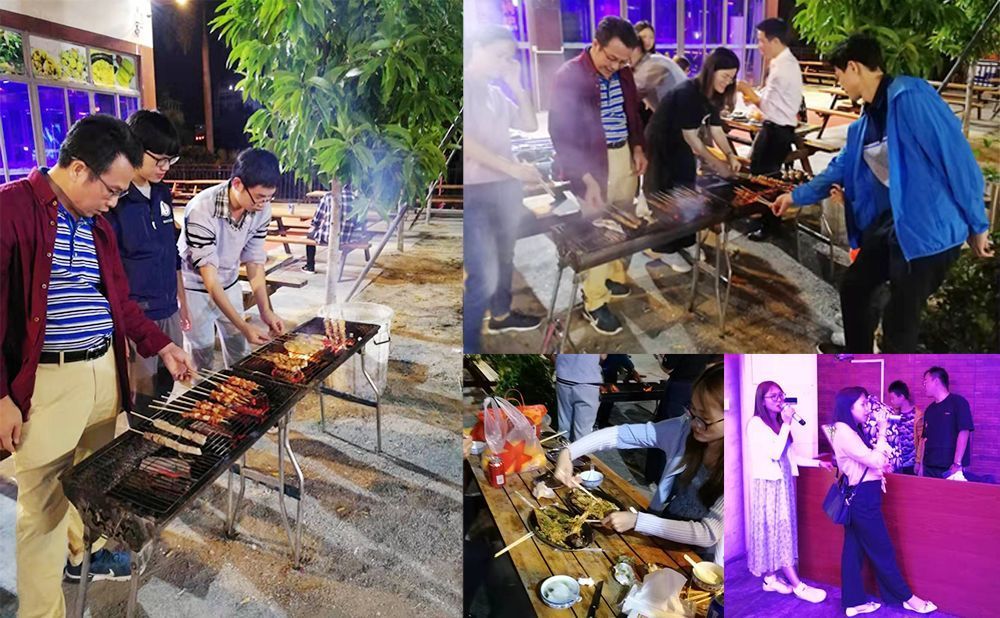 回到酒店后,大家稍作休整就來到了岸邊的音樂烤吧,聽說夜晚的海邊與燒烤最配哦!好了,考驗(yàn)小伙伴們動手能力的時候到了,只見平時斯文勤快的曉勇同學(xué),因生在海邊,擁有豐富的燒烤經(jīng)驗(yàn),成了本屆燒烤活動眾望所歸的“主烤官”,以美味的烤品贏得了大家的好評。這里還提供自助KTV唱歌,正好給了一些帥哥美女們一展歌喉的機(jī)會,仿佛整個燒烤場淹沒在了歡聲笑語的海洋。