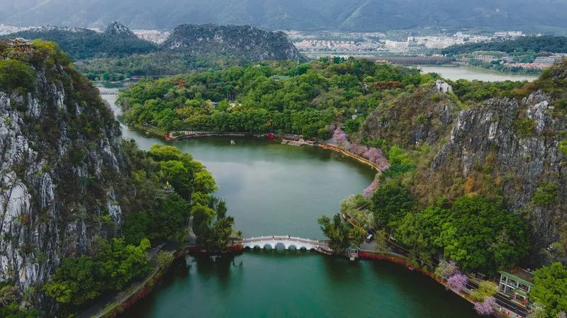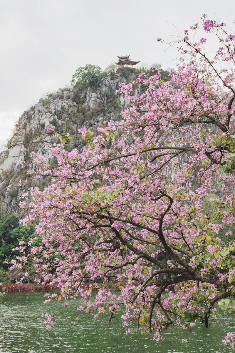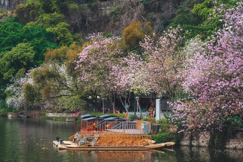 青山綠水,湖光山色的天然絕配,步移景換,教人疑似仙境。都說七星巖有著“桂林的山,西湖的水”,那春天的七星巖,還有著南法的鮮花浪漫。
