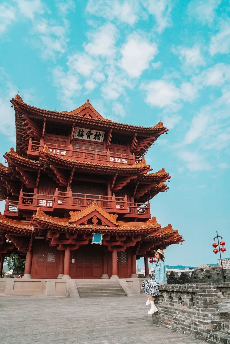 沿著城墻繼續(xù)往前走,便能看見披云樓,樓高三層,很有種滕王閣的氣勢,因樓矗立在城墻最高處常有云霧常繞,所以得名,古時(shí)被用于瞭望之用,歷代重建不斷增起建制,便有了今天的規(guī)模。