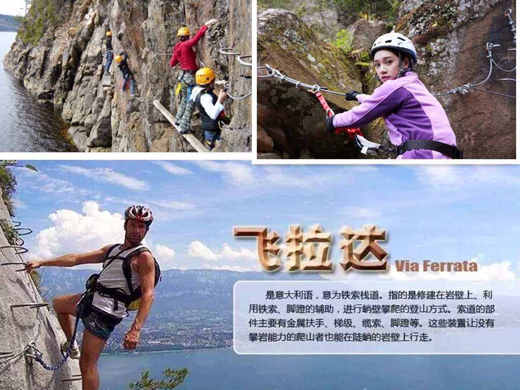 飛拉達(dá)指的是在山體巖壁上建設(shè),由鋼扶手、腳踏、生命鋼纜等構(gòu)成的攀登徑道,讓不具備攀巖能力的人也能攀上陡峭的巖壁。