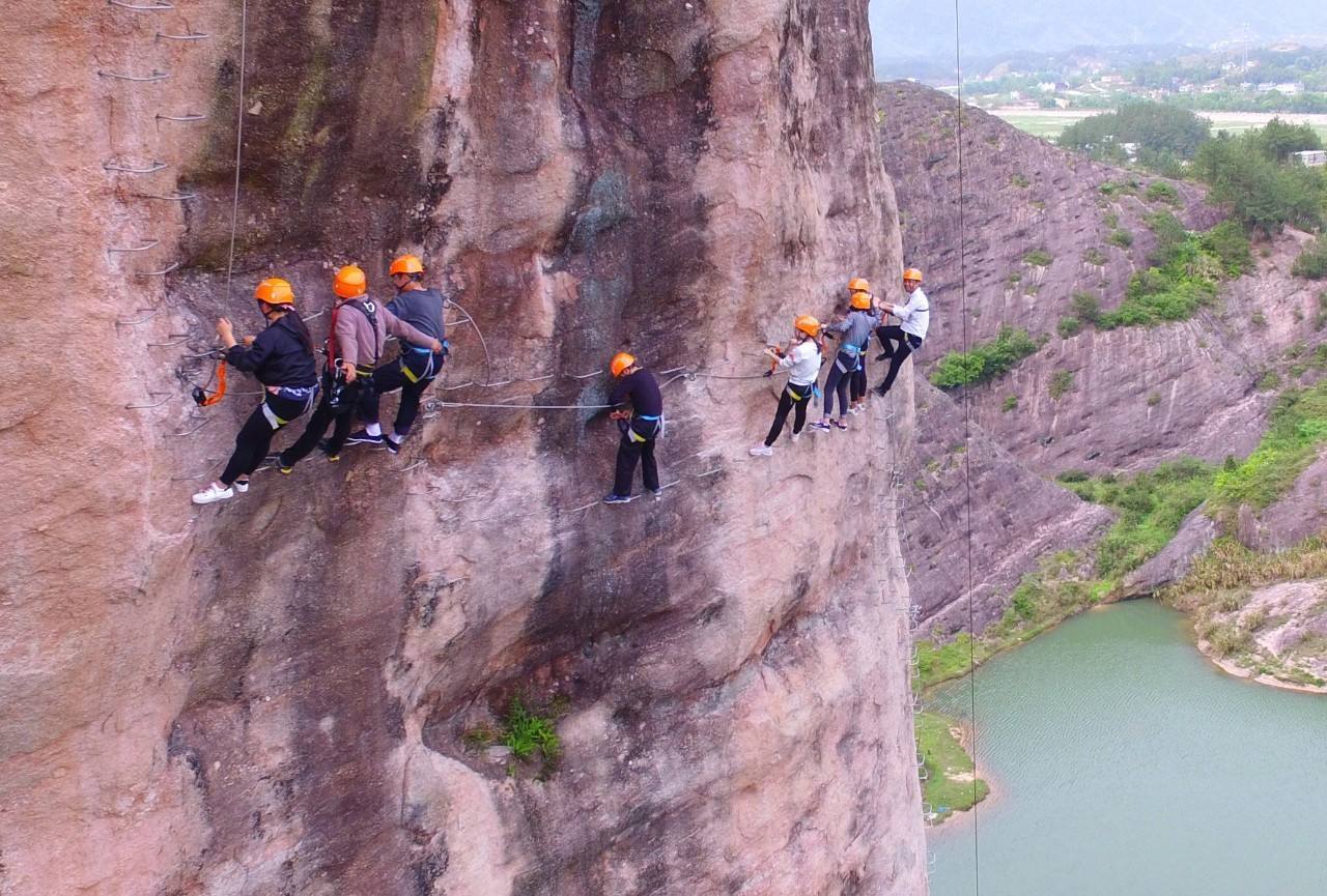 飛拉達(dá)攀巖團(tuán)建活動(dòng),不僅可以感受到攀巖的驚險(xiǎn)樂(lè)趣,還可以感受到侏羅紀(jì)時(shí)期沉淀下來(lái)的赤壁丹崖,觀看吸水神象的奇景、丹峰奇峻,欣賞滿(mǎn)山的高山花海美景。